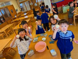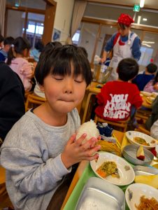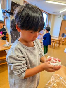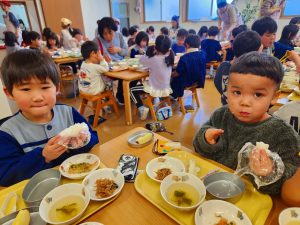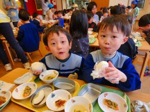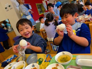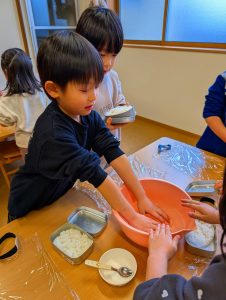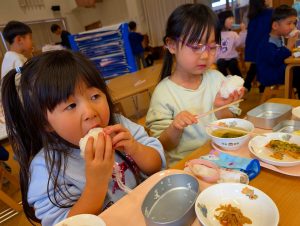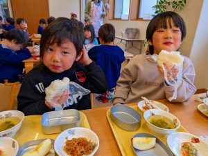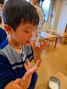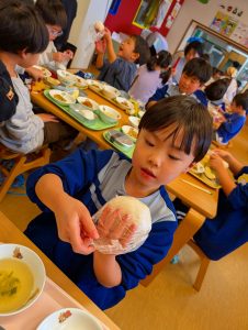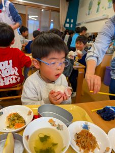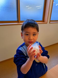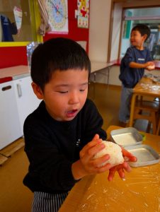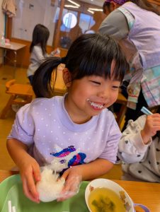 「手のおこめ、うまーい」「ちゃんと塩の味するー」と楽しい感想がいっぱい聞こえました。