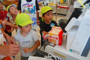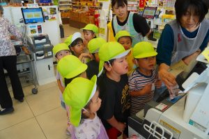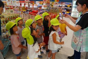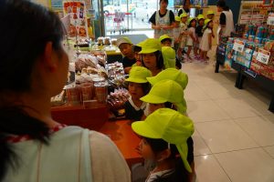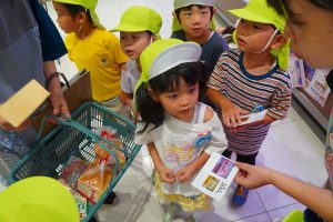 メモに書いてあるものと同じ食べ物はどこにあるのか、どれが美味しそうか・・・、おなじグループの友達と話し合いながら全員の食べる分を買って帰ってきました。