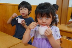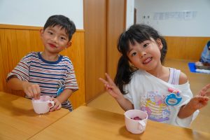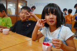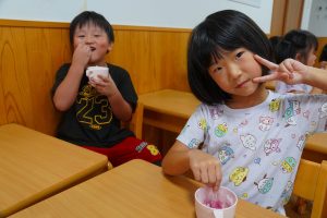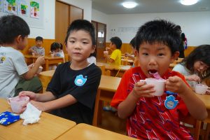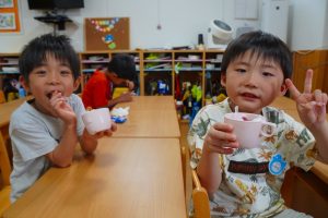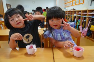 体をたくさん動かして帰ってきたらいおんさんのお部屋に、なんと「かき氷やさん」が来店!!🍧