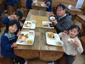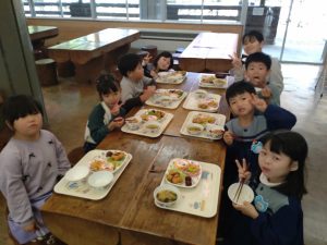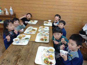食堂に移動して、みんなでどんぐりランチをたべました。おかわりもいっぱいしましたよ😋