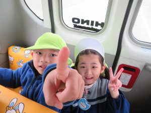 行きのバスから見える景色はどこも真っ白の霧まみれ・・・。「熊でるんじゃない!?」「熊見えた気がする!!!」と朝からバスのなかは大騒ぎ💦