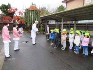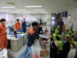 そこで、今年も日頃園でお世話になっている方たちに向けて、らいおん組みんなの力でカレンダーのプレゼントを作り、「ありがとう」の感謝の気持ちをこめて、21日に直接お渡しに行ってきました。