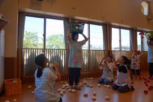 来月は運動会もあるので、子どもたちのお手本として先生たちのまり入れ大会を開催することに!!