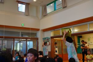 先生当てクイズで選ばれた先生は、管理室のちあき先生、らいおんぐみのかな先生、