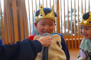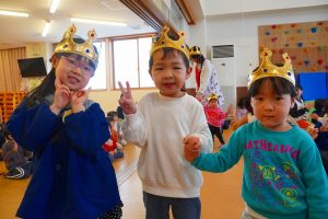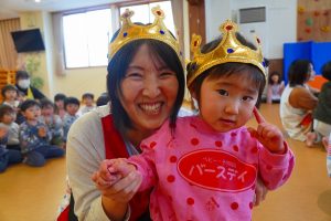 1月21日(水)に、1月生まれのお誕生会がありました🎂1月生まれのお友達は8人。先生1人の合わせて9人で、みんなのあたたかい拍手に迎えられ、元気に入場してくれました😊