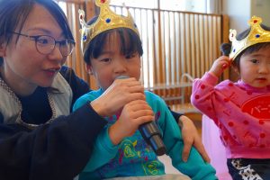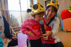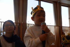 みんなでお誕生日の歌を歌ってお祝いし、お誕生日のお友だち一人一人にお名前と何歳になったかを教えてもらいました🎤