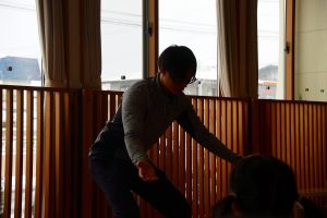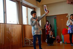 1月生まれのお友達にくじを引いてジェスチャーをする先生を決めてもらい…