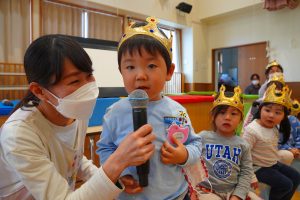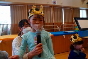 お祝い席に座り、みんなからお祝いのお歌をプレゼントしてもらった後は、どきどきの自己紹介タイム🎤✨
