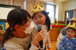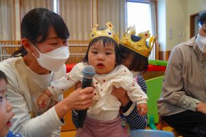11月26日(水)に、11月生まれのお誕生会がありました✨ちょっぴり緊張した様子での入場でしたが、お友だちを見つけるとニコッ😊と笑顔を見せて手を振る姿も見られました‼