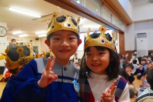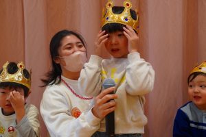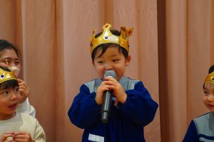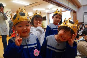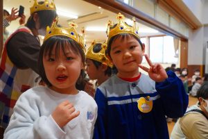 12月生まれのお友達は11人。残念ながらお友達2人お休みになってしまいましたが、お友達9人と先生2人でお誕生日の冠を被り入場しました✨