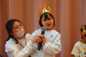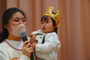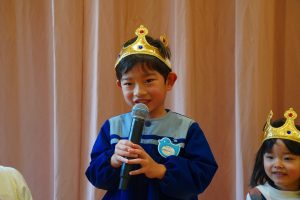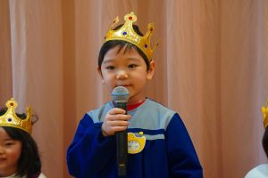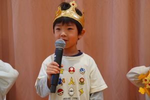 次にみんなでお祝いの歌を歌い、自己紹介と何歳になったのか発表してもらいました!お友達みんなに見られドキドキななか、みんなマイクを持って頑張って発表してくれました🎤✨