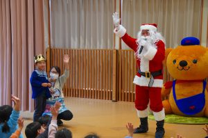 最後にはなんとクリスマスお誕生会ということで、サンタさんとポスくまくんが来てくれ、