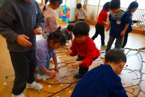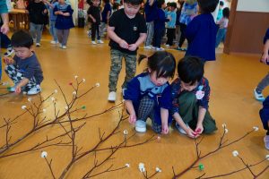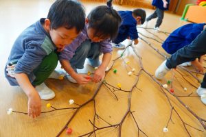 完成した団子をみんなでみずきに付けていきました。色が重なったり、大きさが様々だったり・・・団子一つでも個性があってとても面白いです★